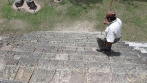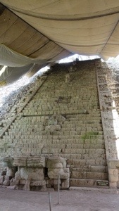 The statue missing from the middle of the Hieroglyphic Stairway was used by the Honduran government to pay the US for the completed excavations earlier in the 20th century. Its current location? The Harvard Peabody museum in Cambridge, MA… which I failed to visit before moving. Grr!