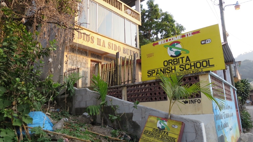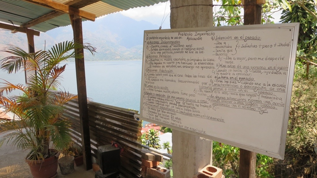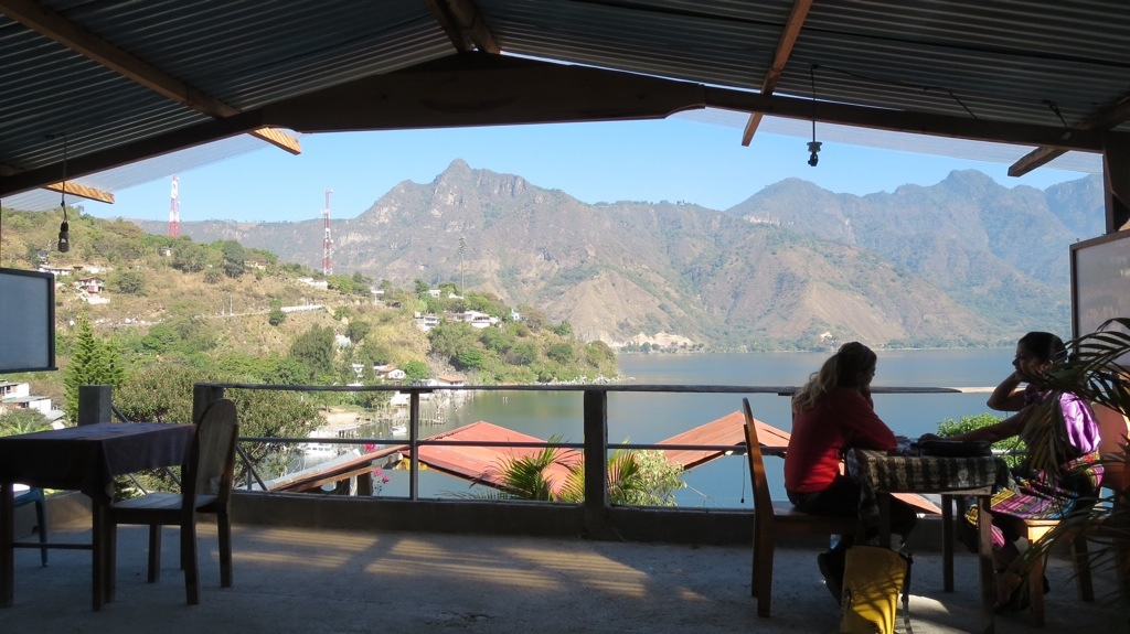 After breakfast, we take the three-minute walk to class. We are studying at the Orbita School, where our morning classes last from 8:30 to 12:30. Sometimes it’s hard for me to concentrate, because our “classrooms” are open-air and overlook the lake and the surrounding hills. I see a boat or some kayaks or a fire on the other side of the lake, and suddenly my mind is not on Spanish. Oops. But it’s preferable to being stuck indoors on a beautiful day! Elizabeth, my teacher, is the younger sister of my host Linda and keeps me in line.