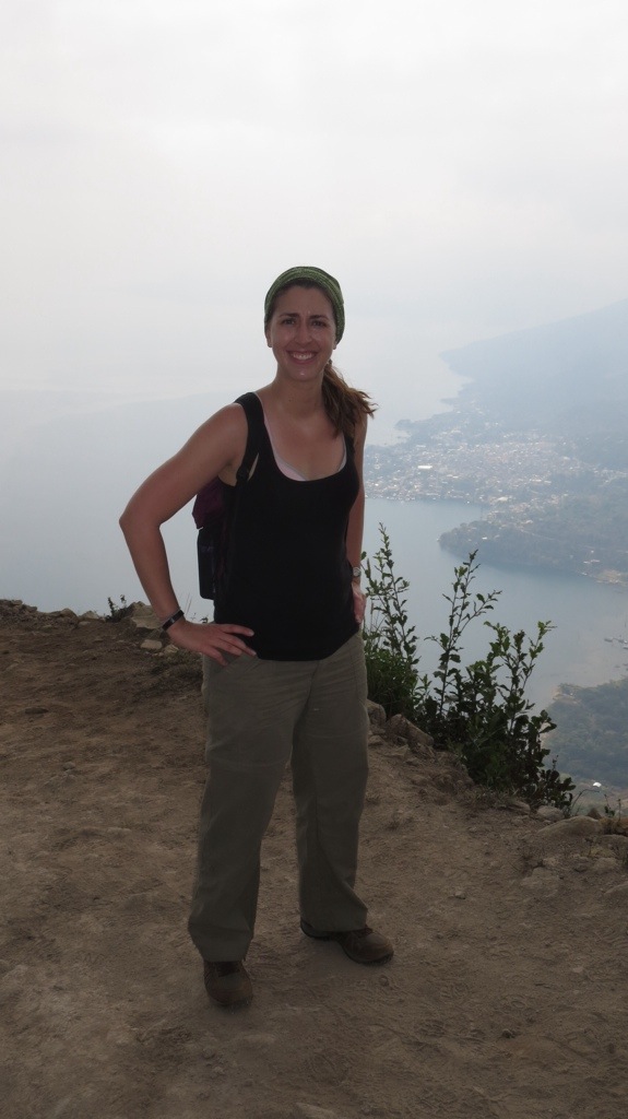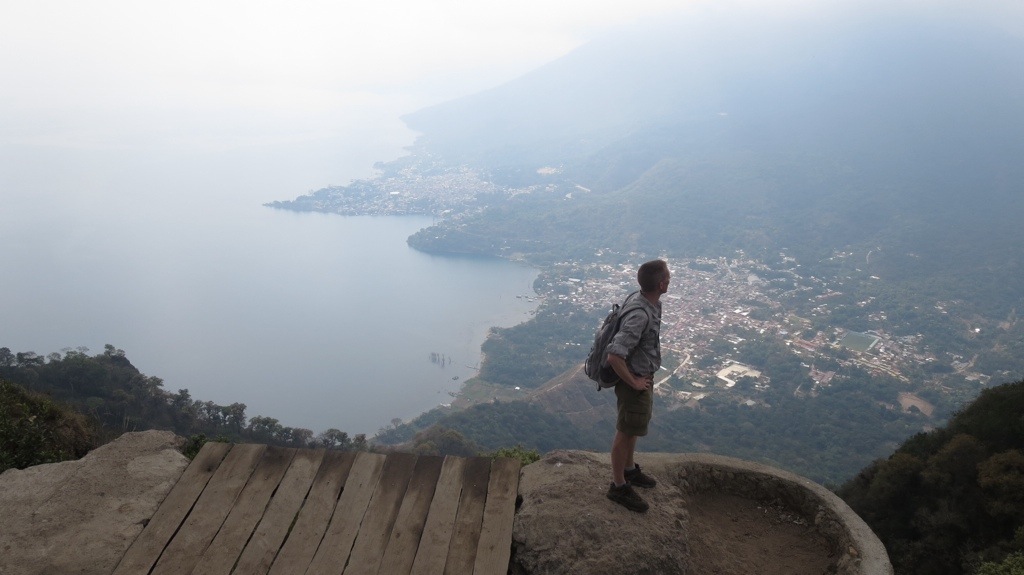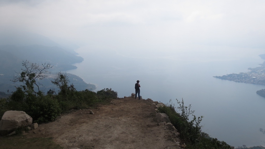 At the top, drenched in sweat (or maybe that was just me), we took our obligatory landscape photos. While we could see some amazing views of San Pedro and some of the other towns, the weather was unfortunately very cloudy and obscured much of the lake. A local family of a father and two elementary school-aged children had reached the summit at the same time. Content, the dad proceeded to take the Sunday paper out of his pocket, sit down on a tree stump, and read while his kids scoped out the view. Now that’s the way to spend a Sunday!