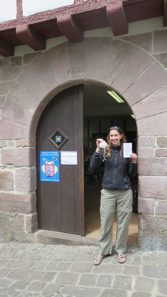And then I was better. I picked up a pilgrim shell and my credencial or “pilgrim passport” that will be stamped at every place I stay to verify that I walked the whole journey to Santiago. Tomorrow I am sending my main pack ahead of me over the Pyrenees to Roncesvalles, where I’ll meet up with it at my hostel there. I won’t worry about straining my knees and back and feet on this first and most difficult day of the trek. When the terrain flattens on day 2, I will take up my bag again.