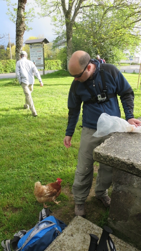 And then it was sunny again. See a pattern here? I didn’t even bother taking my rain gear off. The road today was mostly downhill, which is not as pleasant as it sounds because it places an entirely different pressure on your feet and legs. I am LOVING my trekking poles: they have really saved my knees. Tomorrow will have much flatter terrain; I am looking forward to it.