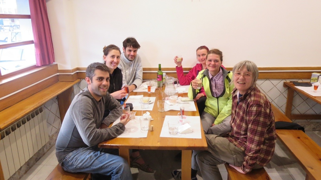 Suzie, Miho from Croatia, and Colin are also staying in Zubiri tonight, so I got to eat my pilgrim dinner (and wine) with friends. (A different Italian last night had asked Suzie and I if we were sisters. Is it me, or is it Italians? 🙂 )