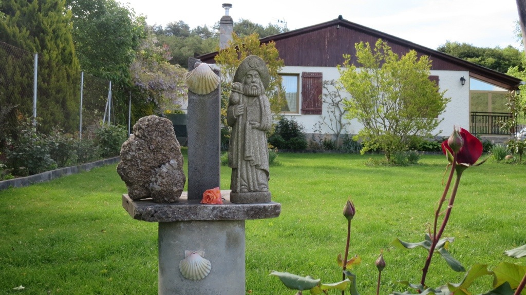 Clouds loomed in the distance, and the overcast skies made the views less than thrilling. I walked past a British woman who was walking the Camino in the opposite direction. “Can’t you just smell the flowers? How wonderful they smell!” she exclaimed, pointing out a patch of briar roses to me. It’s always interesting to me to hear other travelers’ stories of where they’ve come from and what they’ve learned.