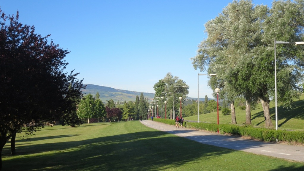 I *was* walking rather fast today, only because about three miles outside of Monjardin, a man at a food truck (with awesome fresh-squeezed orange juice!) told us that a huge storm was coming in the afternoon. I did not particularly feel like walking through a thunderstorm, so I kept my breaks to a minimum, stopping only in Los Arcos for a sandwich that I ate along the way.