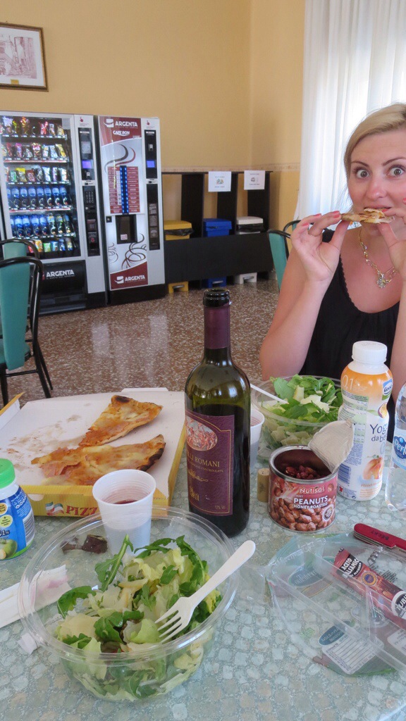On the flight, I had to begin the process of switching the Spanish in my head to Italian, which proved to be no easy feat. I sat next to a Spanish woman who for some reason tried to converse with me in Italian even though it was apparent that neither of us spoke it well. She would also proudly answer me in whatever English she knew. I would offer her something while speaking in Spanish, and she would accept, perk up, and beam, “THENK you VER-y MUCH-a!”