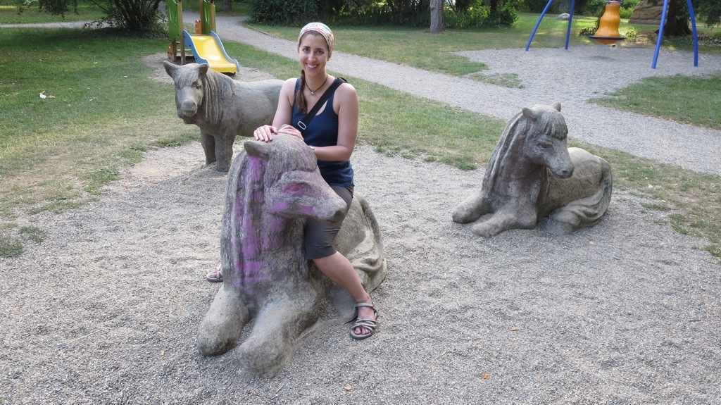 The night before school started, I went into the center (of Ljubljana) with my “cousins” Katja and Suzi. We parked in the underground parking lot beneath Zvezda Park where Katja works and saw the town on foot. The bus lines have COMPLETELY changed since I was a student at summer school here, and streets that were once full of traffic have now been pedestrianized. The banks of the Ljubljanica River have always been lined with cafes, but now those cafes stretch farther than ever before to an area where steps and footpaths have been built along the river. I wistfully thought, “Man, 21-year-old Becky would have loved this!”