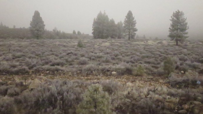 This second and final train day was a real treat, as volunteers boarded the train to serve as docents and read information about key points along the routes.  As we curled through another mountain pass, a gray pall was cast over the entire landscape.  Through the gloom, the bleak, colorless vegetation was covered in frost that looked like a fine layer of ash.  It felt like rolling through a graveyard.