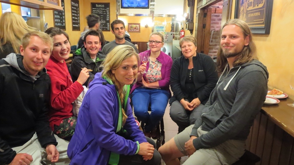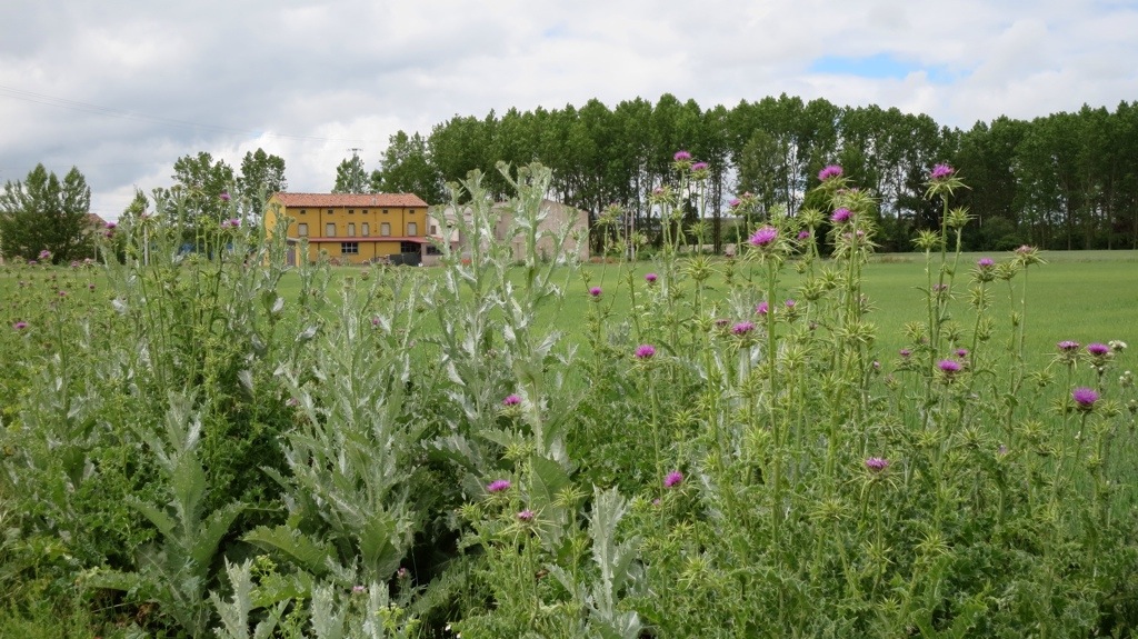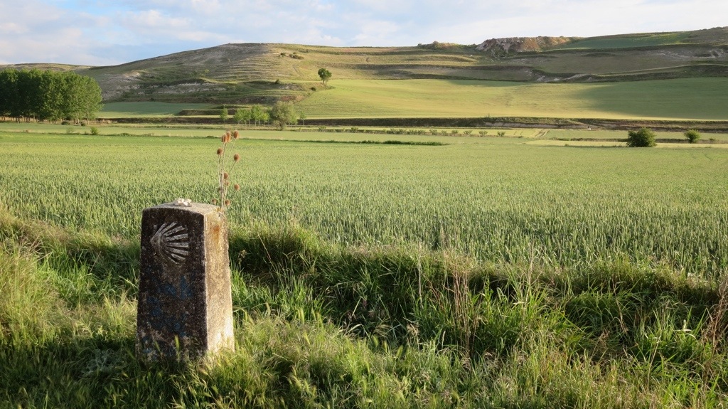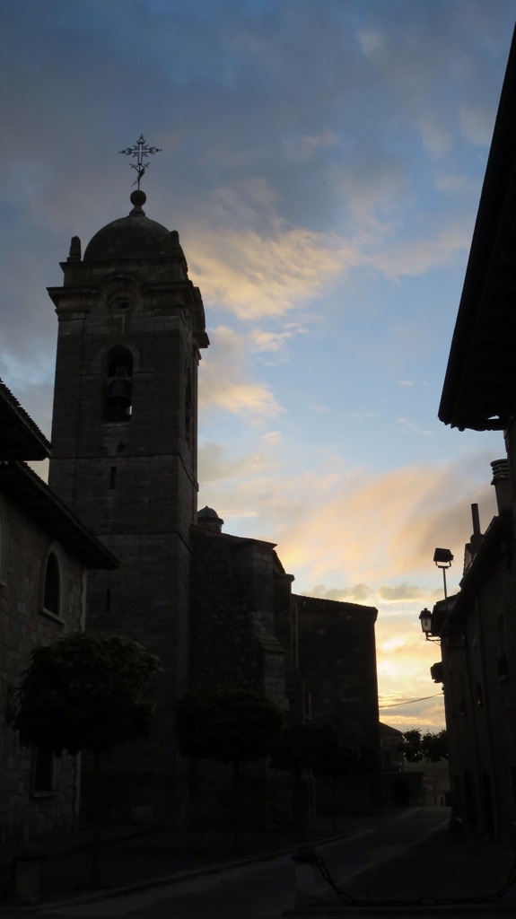 The weather in Frómista was beautiful and warm for a change. It was the first time in a long time that I could remember being able to (more or less) sit comfortably outside in short sleeves. At Jackie’s recommendation, I joined Sarah and Eveline from Germany at the corner restaurant for dinner, where the pilgrim menu did not look like a pilgrim menu. Again, for the first time in ages, I had a nice vegetable salad, spinach lasagna, and wine. No French fries in sight! The restaurant that Sunday evening was full of young couples with their smaill children enjoying the weekend. Not that I’m normally a huge fan, but Rod Stewart’s Great American Songbook was playing overhead, and a pilgrim couple had stood up to slow dance. It felt really… civilized. Almost like I wasn’t wearing wool hiking socks along with Teva sandals. Almost :).