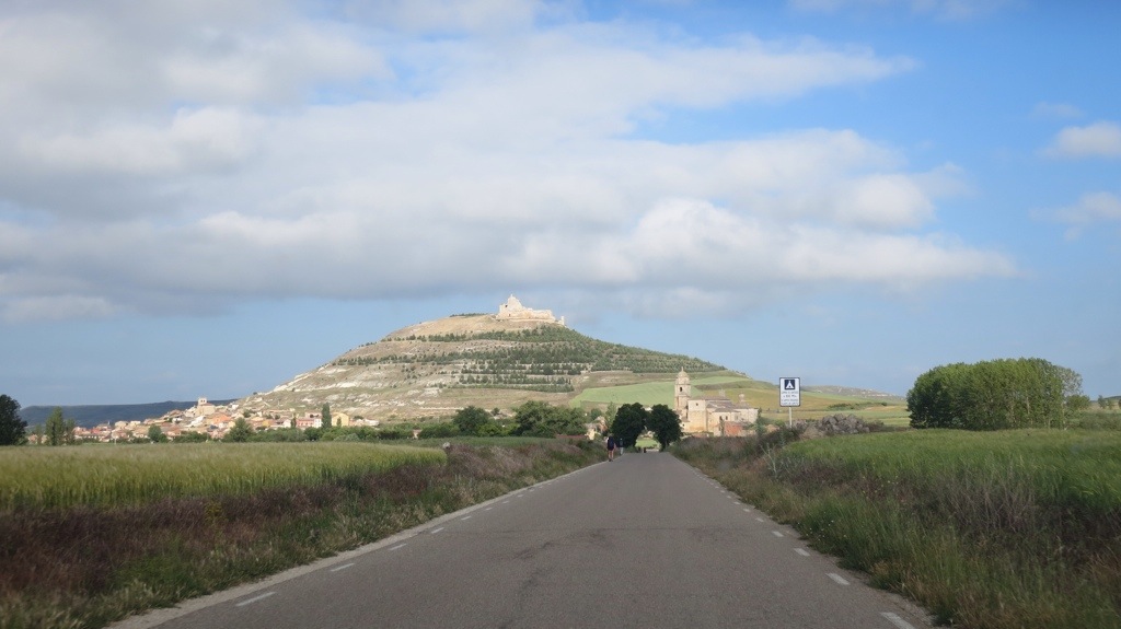 The cab driver, who looked like a Spanish Robert de Niro in sunglasses, was accustomed to talking to pilgrims and so spoke in a very clear Spanish that I could understand well. We flew down the road. I hadn’t been in a car in three weeks. Cars go so fast when you’re used to walking everywhere. My heart broke as we sped past both Chris and Jasmine along the road. It hurt even more as we rounded the corner and started to approach Castrojeriz: a gorgeous tree-lined road leads up to the town, where a castle on a cliff overlooks the cathedral of the old town. It was a clear sunny day, perfect for walking. I groaned in disappointment.