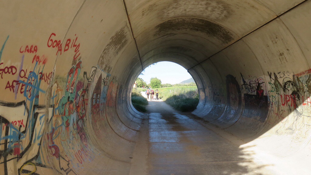 The morning was somewhat gloomy, but the path that led out of Logroño into the surrounding suburbs was beautiful. There were a ton of local people going for walks, and almost every one of them shouted out, “Buen camino!” as I passed. The city path turned into a separate route that wound through a metropark, complete with a pond, playground, a clean public bathrooms. (Yay!)