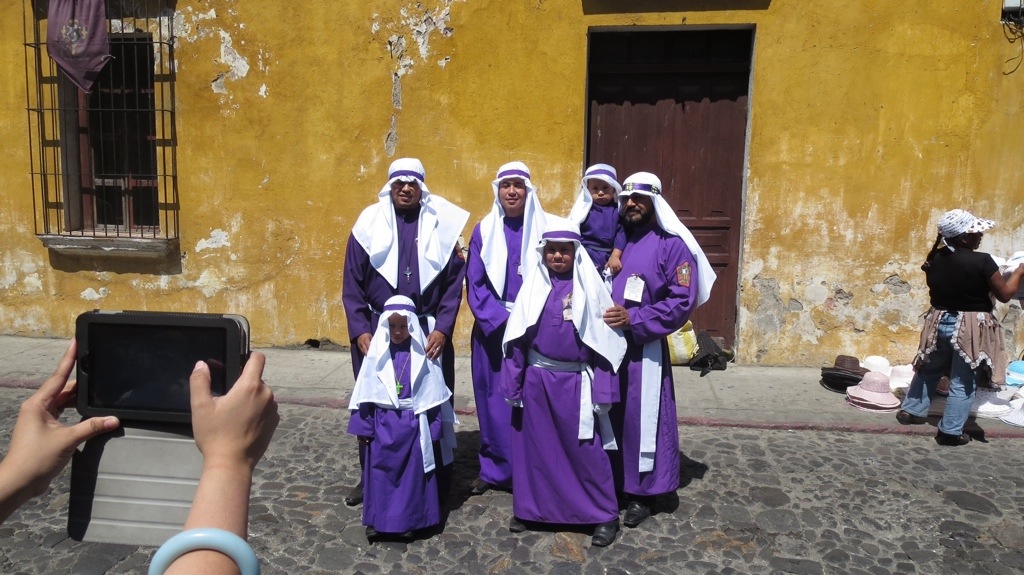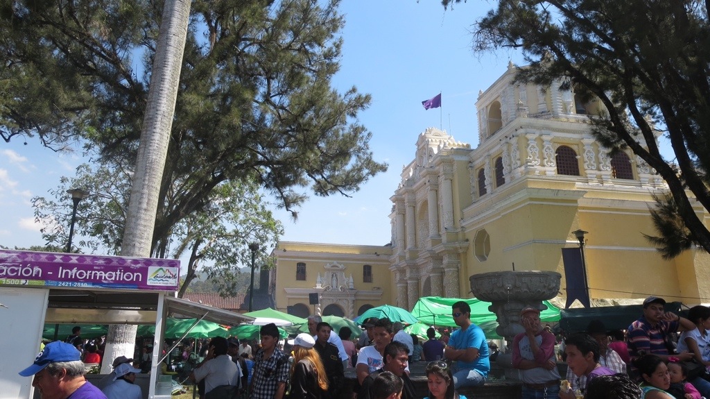 I checked into a lovely guesthouse, Posada Juma Ocag, which had a private single room, en suite, for only 100Q, or just under $13. The rooms overlooked a small green courtyard. Part of me wants to keep this place a secret since it’s so nice, but the staff people are friendly and do a great job, so I’m happy to recommend them. I spent Friday evening checking out the festivities near Iglesia La Merced, which was already preparing for Palm Sunday.